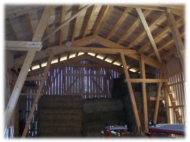 Der Stall wurde bereits von Paul Miller sen. im Jahr 2007 erstellt. Die dreischiffige Konstruktion ist aus sägerauem Vollholz vom Stallbesitzer mit hoher Eigenleistung ausgeführt worden.